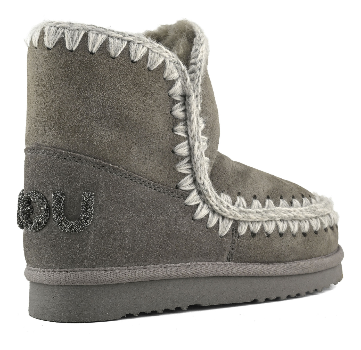 Die MOU Eskimo 18 Glitter Logo Boots in der Farbe Natural Grey vereinen handwerkliche Qualität, Wärme und edlen Schimmer. Ein ikonisches Design, das mit feinem Glitzereffekt und glänzendem Logo auf der Ferse den klassischen MOU-Stil neu interpretiert.